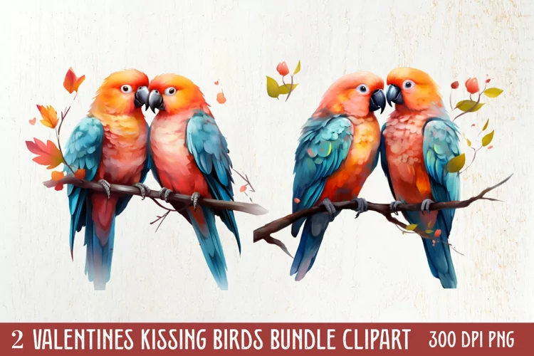 Watercolor Clipart Valentine's Day Valentines Clipart Valentine's Day Clipart Valentines Bundle Valentine's Day Bundle Valentines Watercolor Clipart Valentines Sublimation Designs Wotercolour Clipart Breeds Of Valentine Kissing Birds Bundle