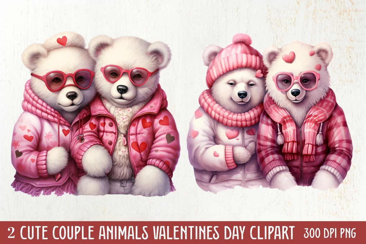 Cute Couple Animal Valentine Clipart Bundle, Cute Couple Animal, Couple Animal Watercolor, Couple Animal, Watercolor Couple Animal