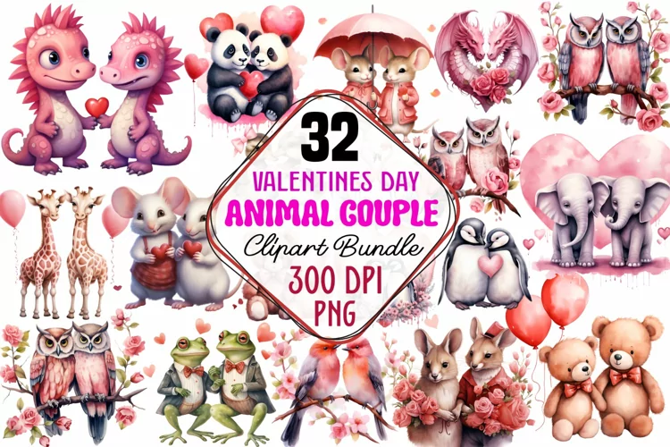 Valentines Day Animal Couple Clipart Bundle, Valentines Day Animal Couple, Valentines Day Animal, Valentine Animals,  Animal Couple Clipart, Animal Couple Sublimation, Valentines Bundle, Valentines Clipart, Valentine Animals Clipart,  Animal Couple waterc