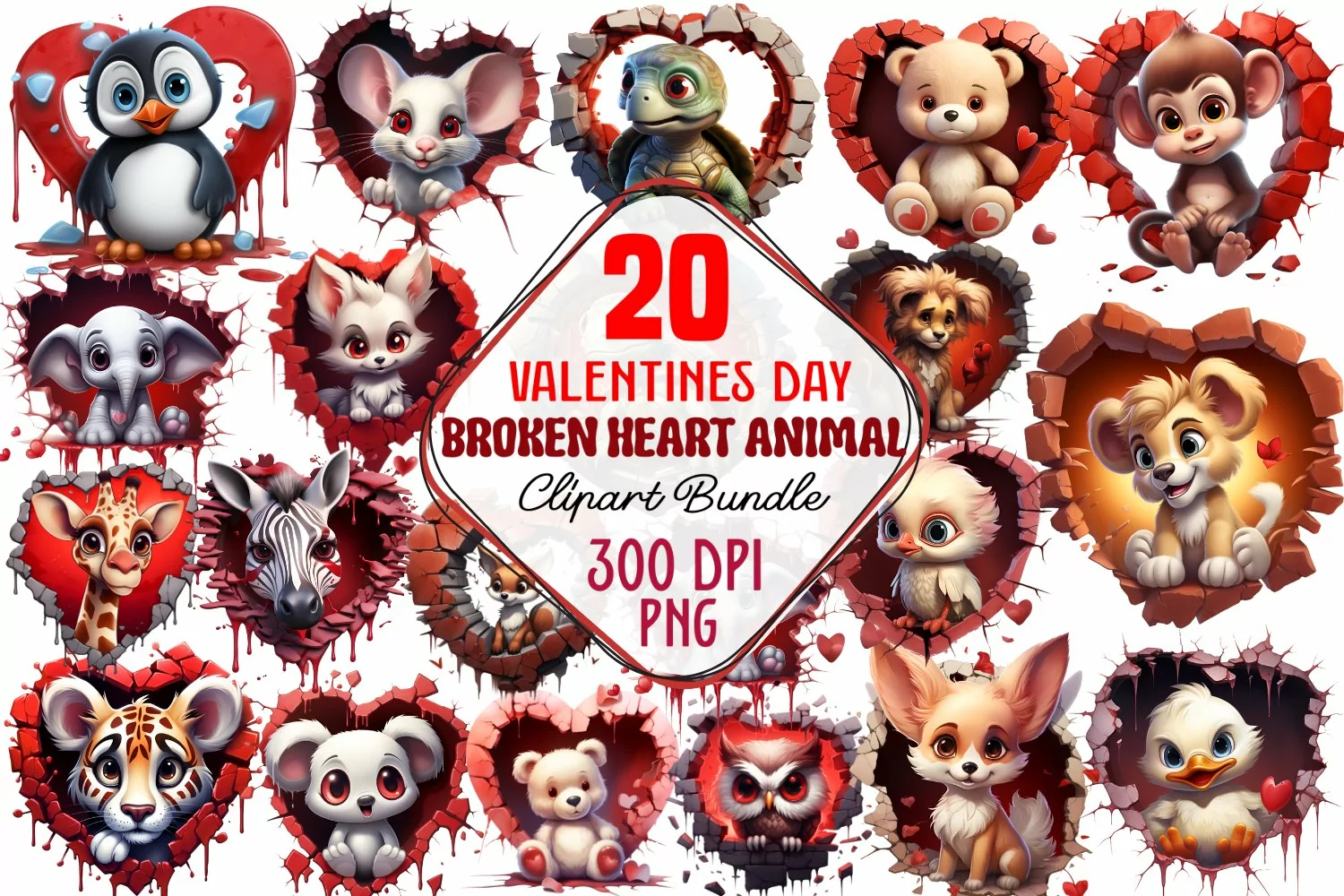 Valentine Broken Heart Animal Clipart Bundle, Valentine Broken Heart Animal Clipart, Valentine Broken Heart Animal Sublimation, Broken Heart Animal Clipart