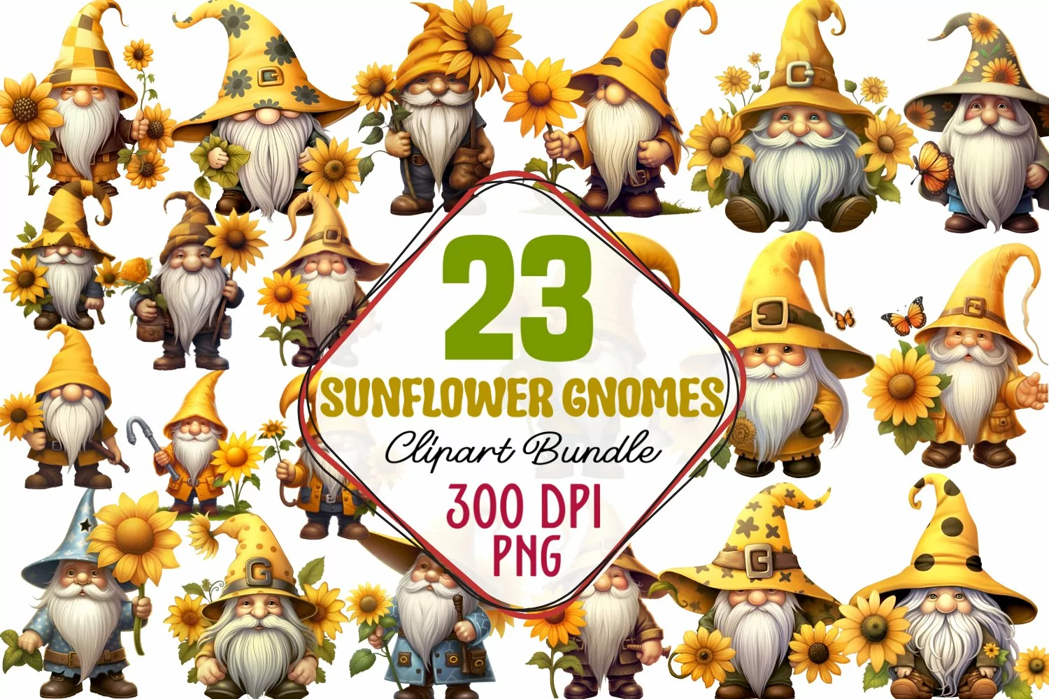 Sunflower Gnomes Sublimation Clipart Bundle, garden gnomes sublimation, sunflower clipart, sunflower gnomes, cute garden gnomes, sunflower decor
