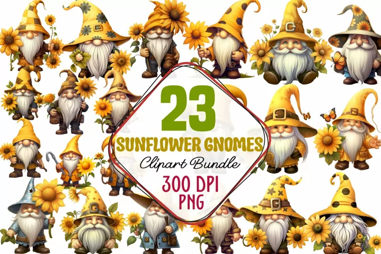 Sunflower Gnomes Sublimation Clipart Bundle, garden gnomes sublimation, sunflower clipart, sunflower gnomes, cute garden gnomes, sunflower decor, gnome clipart png, floral gnomes png, sunflower illustration, whimsical gnomes clipart, Sunflower Gnomes Subl