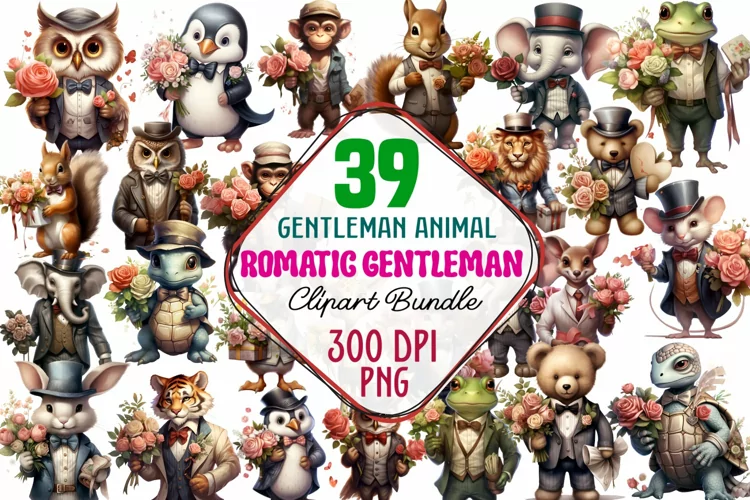 Similar Design Products to Romatic Gentleman Animal clipart Bundle