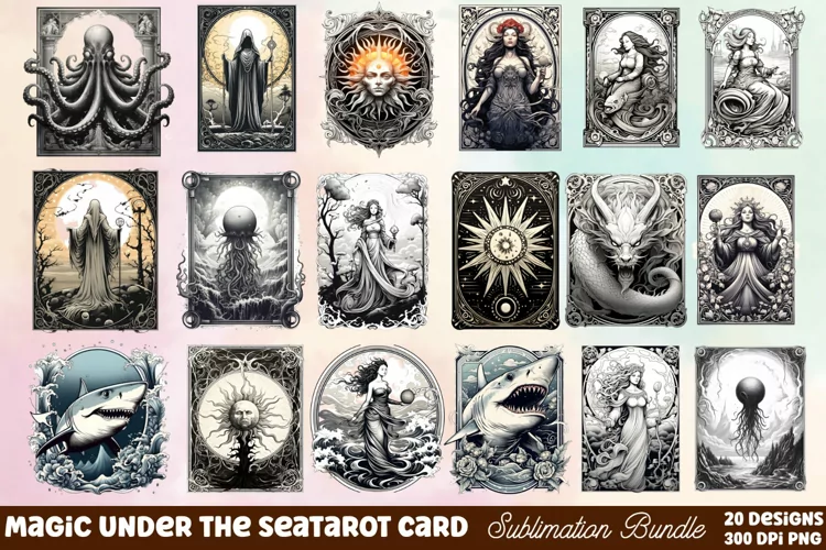 Similar Design Products to Magic Under The Sea Tarot Card Clipart Bundle