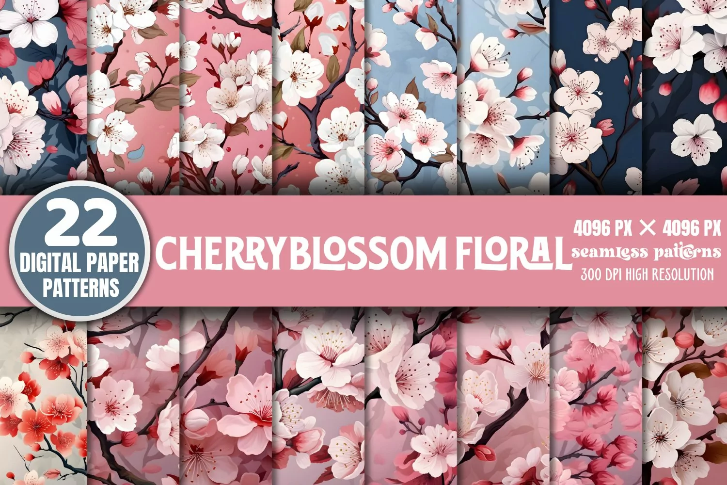 Cherryblossom Floral Seamless Patterns Bundle, Seamless Pattern, Seamless Patterns, Seamless, Pattern, Patterns, Digital Paper, Digital Papers