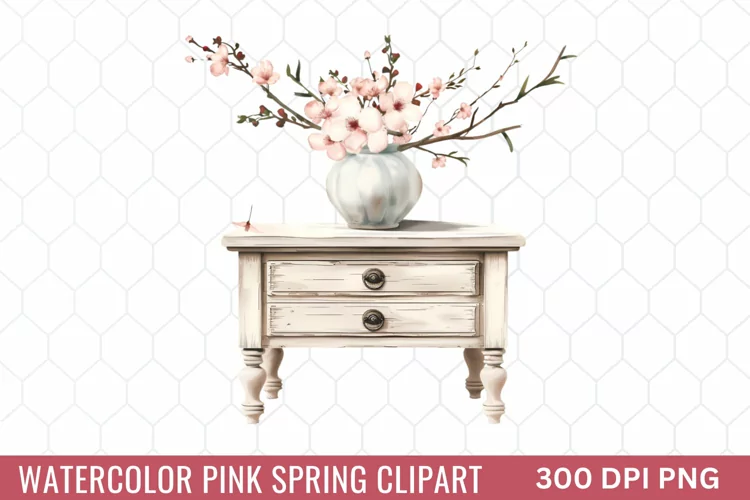 Watercolor Pink Spring Clipart example image 1