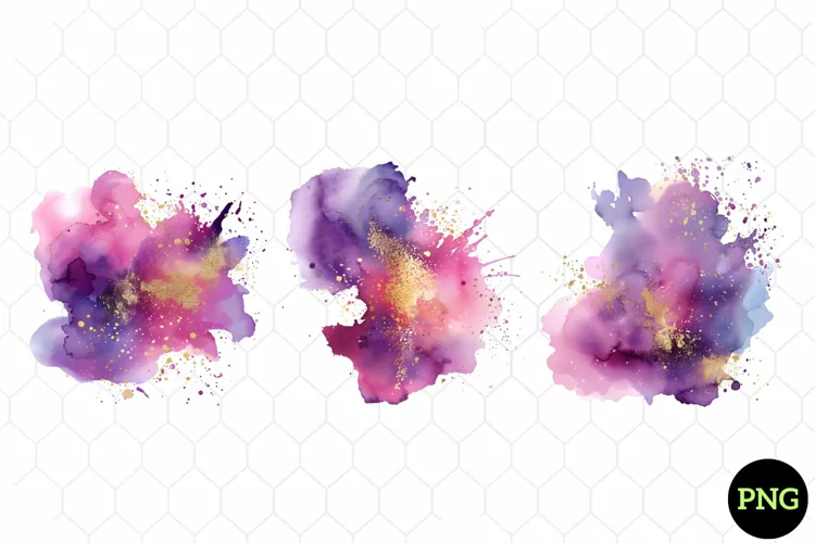 Similar Design Products to Watercolor Purple Pink Gold Splash Clipart