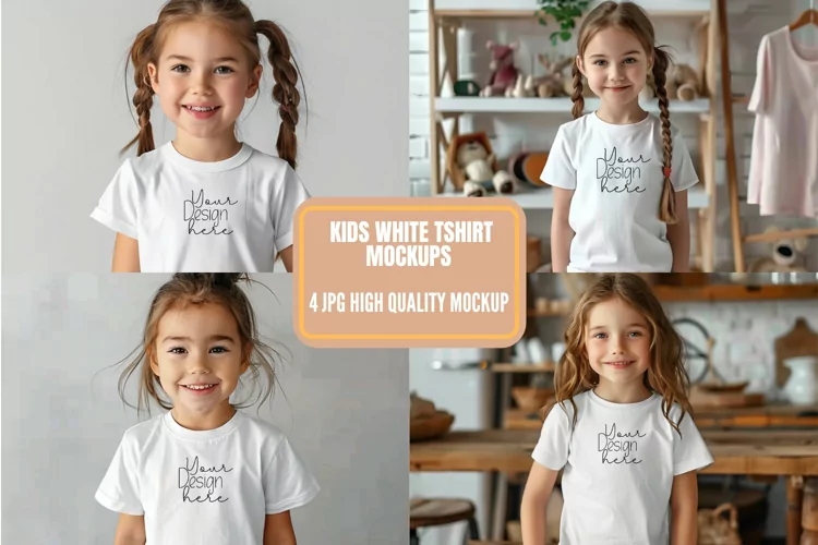 Kids White T-shirt Bella Canvas Mockup