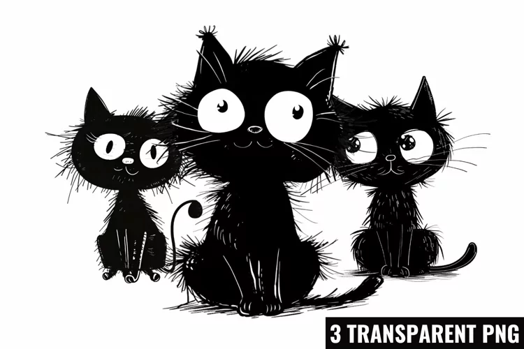 Whimsical Black Cat Sublimation Clipart