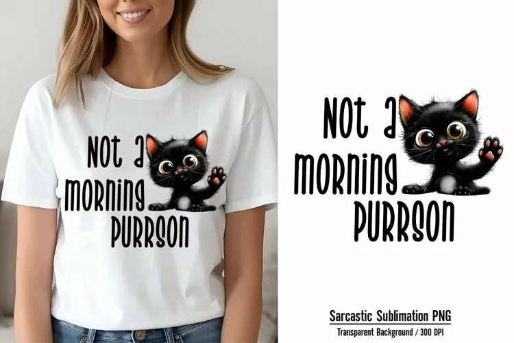 Funny Cat Quotes Sublimation, Not a morning purrson PNG example image 1