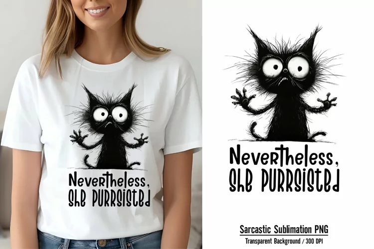Funny Cat Quotes Sublimation, Nevertheless, she purrsisted example image 1