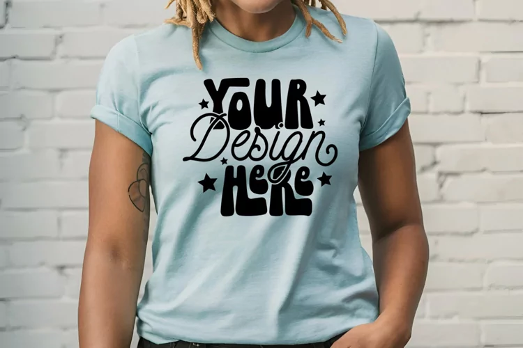 Heather Ice Blue Bella Canvas Shirt Mockup, 3001 Tshirt