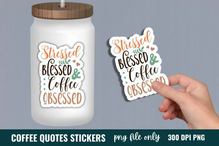 Printable Coffee Sticker, Stressed blessed & coffee obsessed