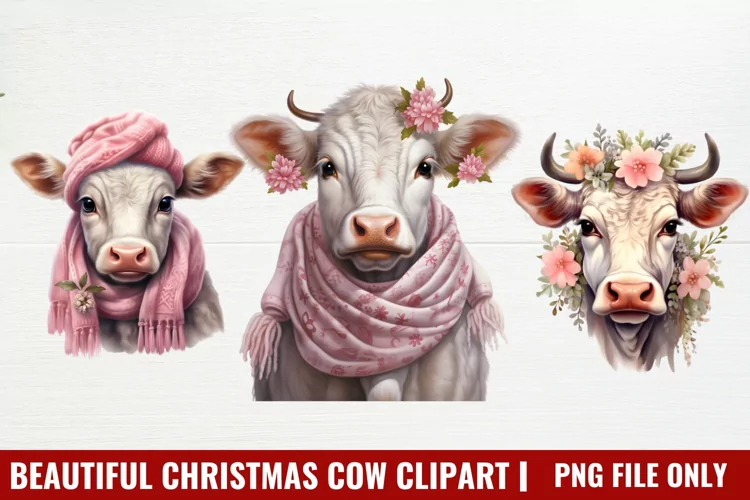 Similar Design Products to Beautiful Christmas Cow Clipart