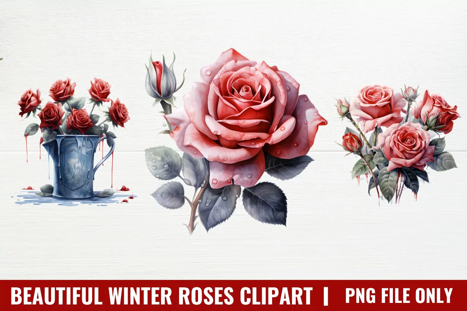 Beautiful Winter Roses Clipart, Christmas Rose Clipart example image 1
