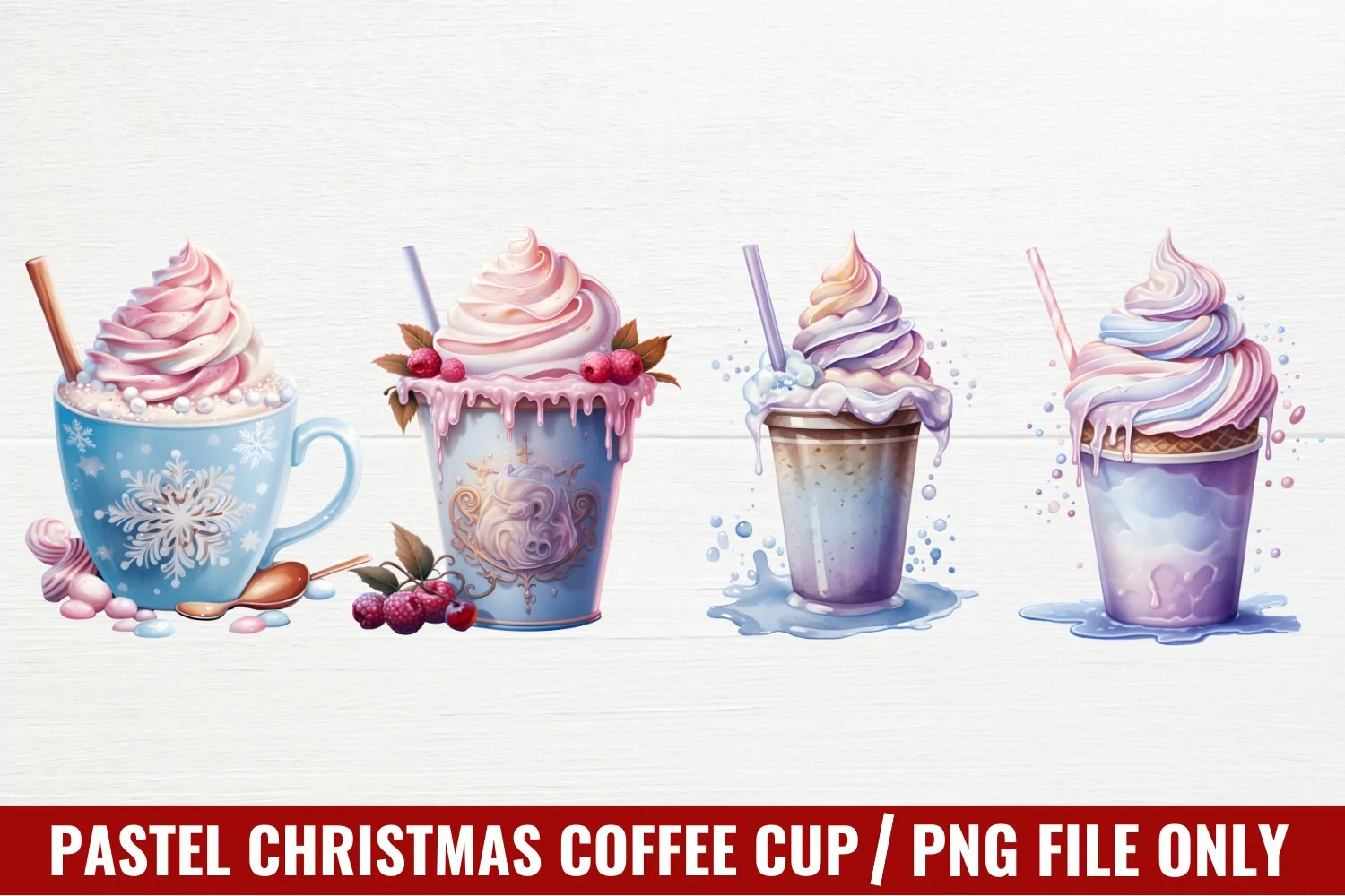 Pastel Christmas Coffee Cup Sublimation, Christmas Clipart example image 1
