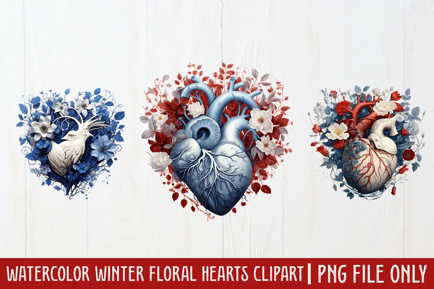 Similar Design Products to Watercolor Christmas Floral Hearts Clipart