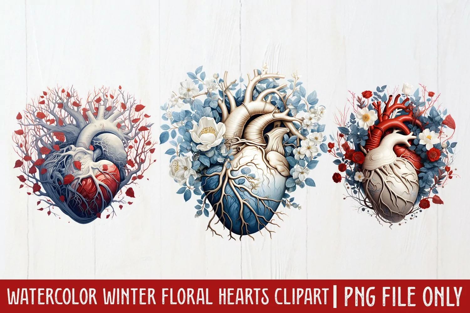 Similar Design Products to Watercolor Christmas Floral Hearts Clipart