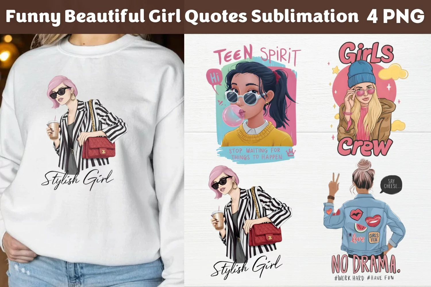 Funny Beautiful Girl Quotes Sublimation Design PNG, example image 1