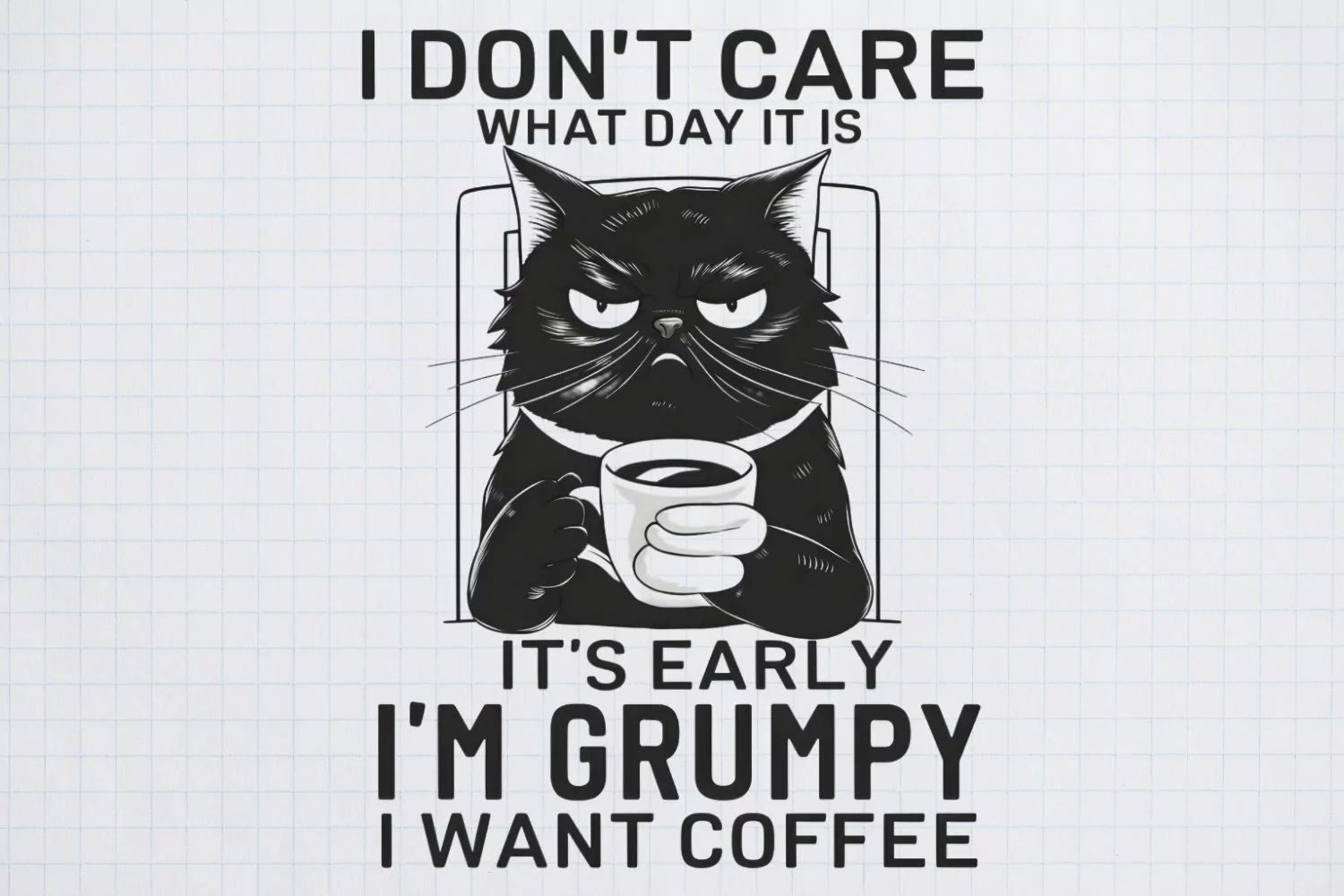 Sublimation PNG, Grumpy Cat Coffee Lover