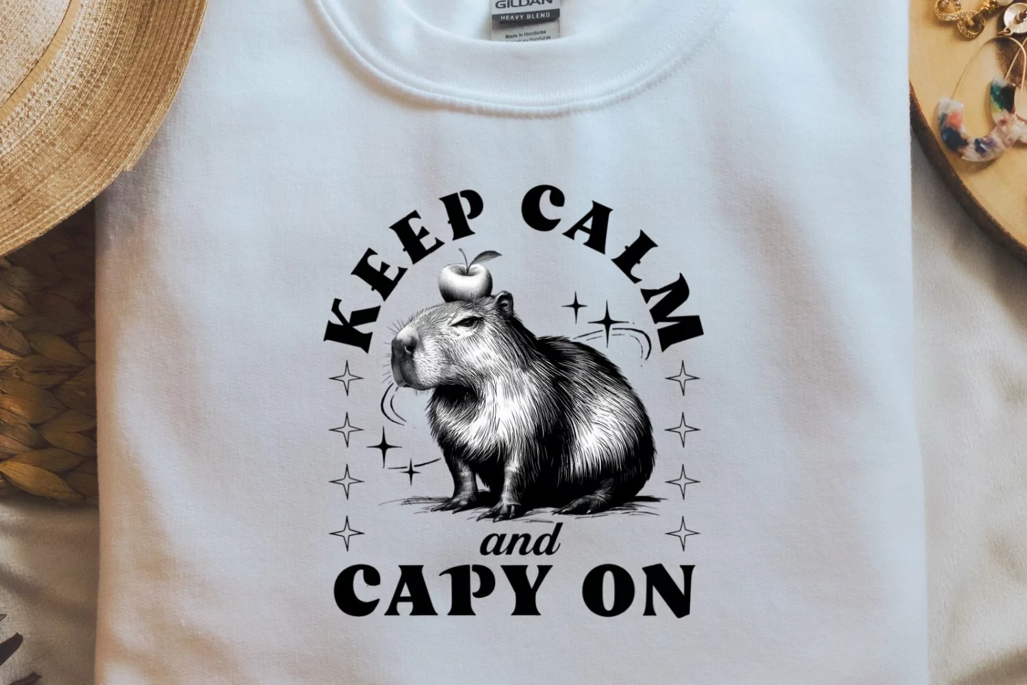 Sarcastic Animal Keep calm and capy on Black png example image 1