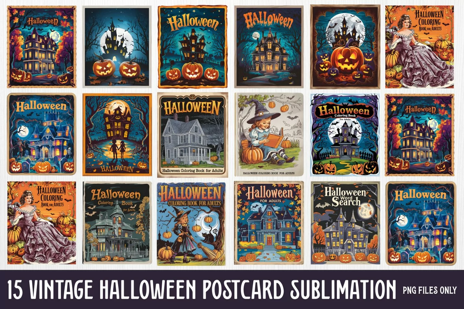 Vintage Halloween Postcard Sublimation Bundle example image 1