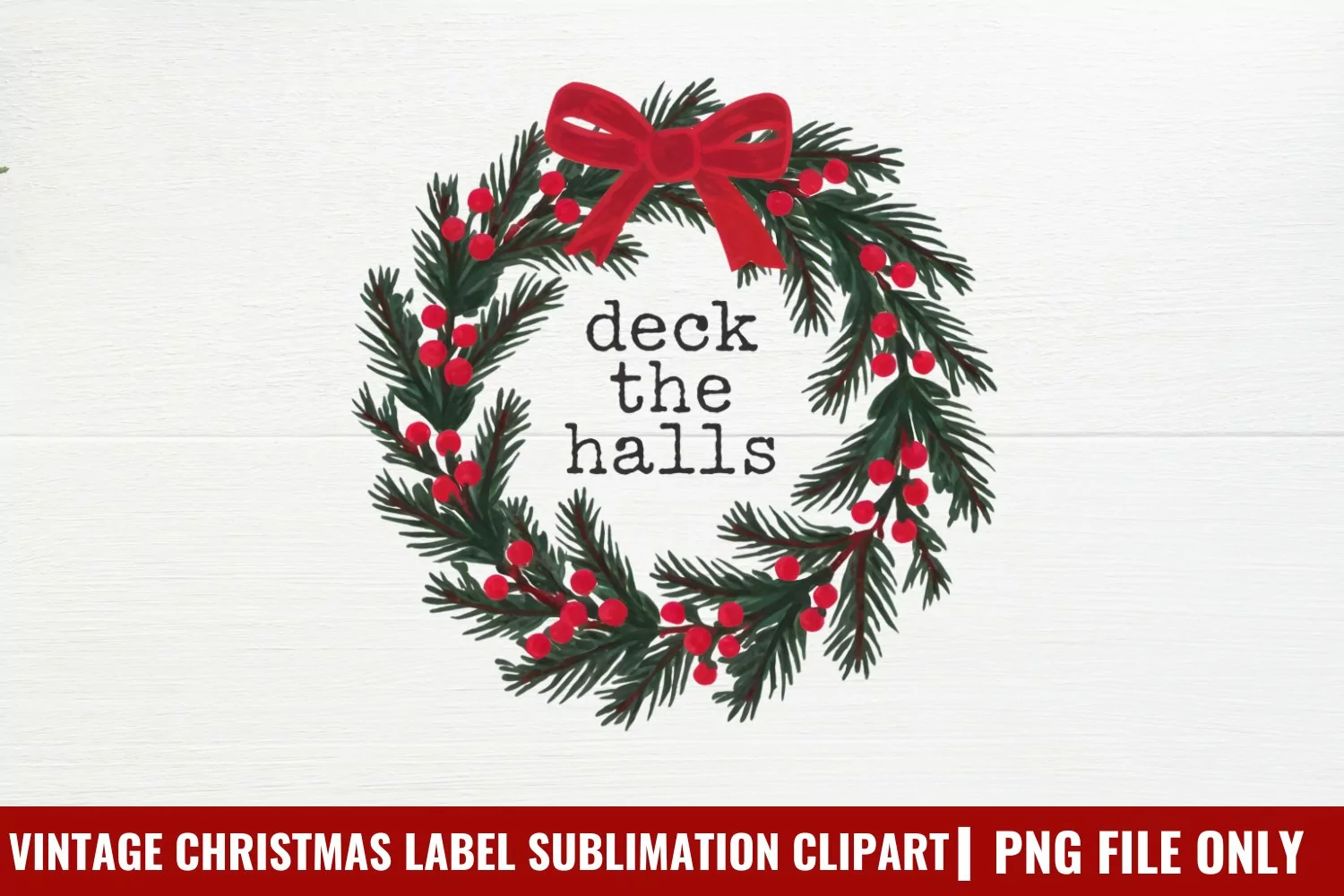 Deck the halls Vintage Christmas Label Sublimation PNG example image 1