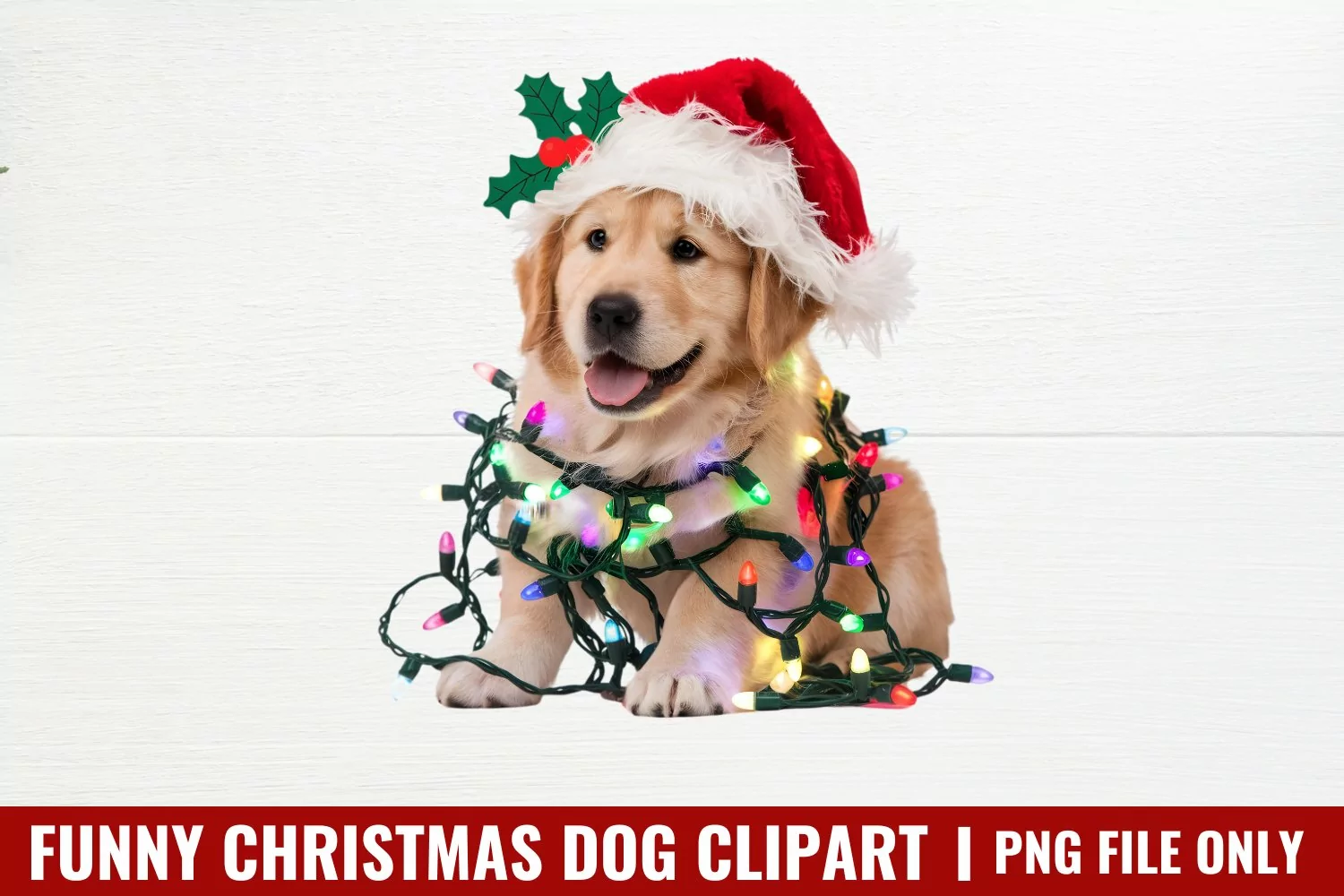 Funny Christmas Dog Watercolor Clipart PNG example image 1