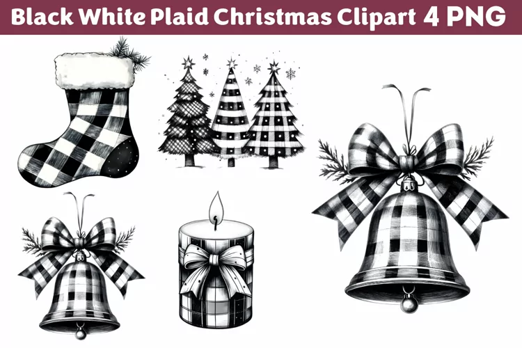 Black White Plaid Christmas clipart PNG example image 1