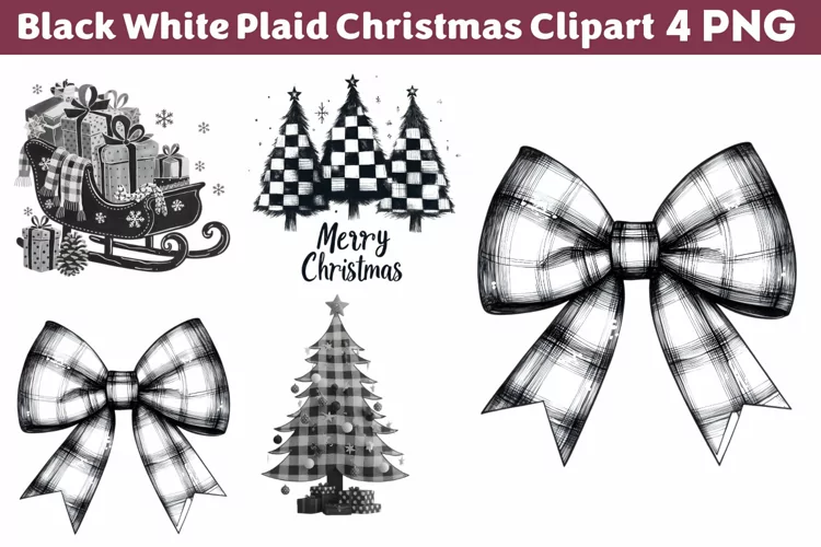 Black White Plaid Christmas clipart PNG example image 1