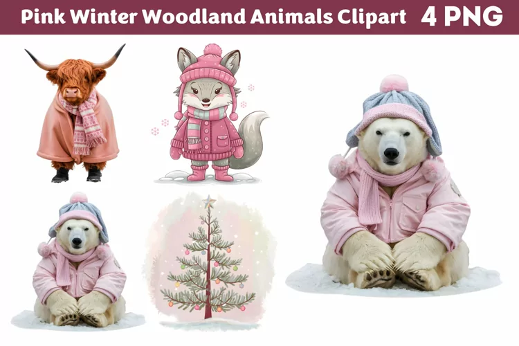 Similar Design Products to Pink Winter Woodland Animals Clipart PNG
