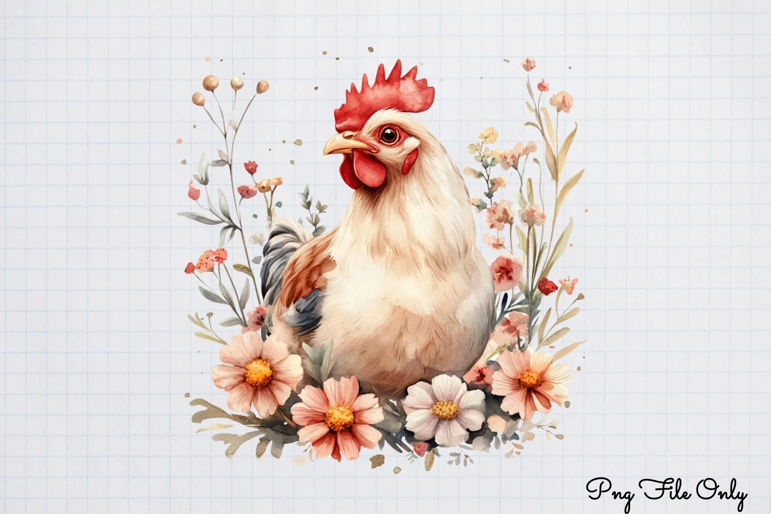 Watercolor Spring Floral Animal Clipart PNG example image 1