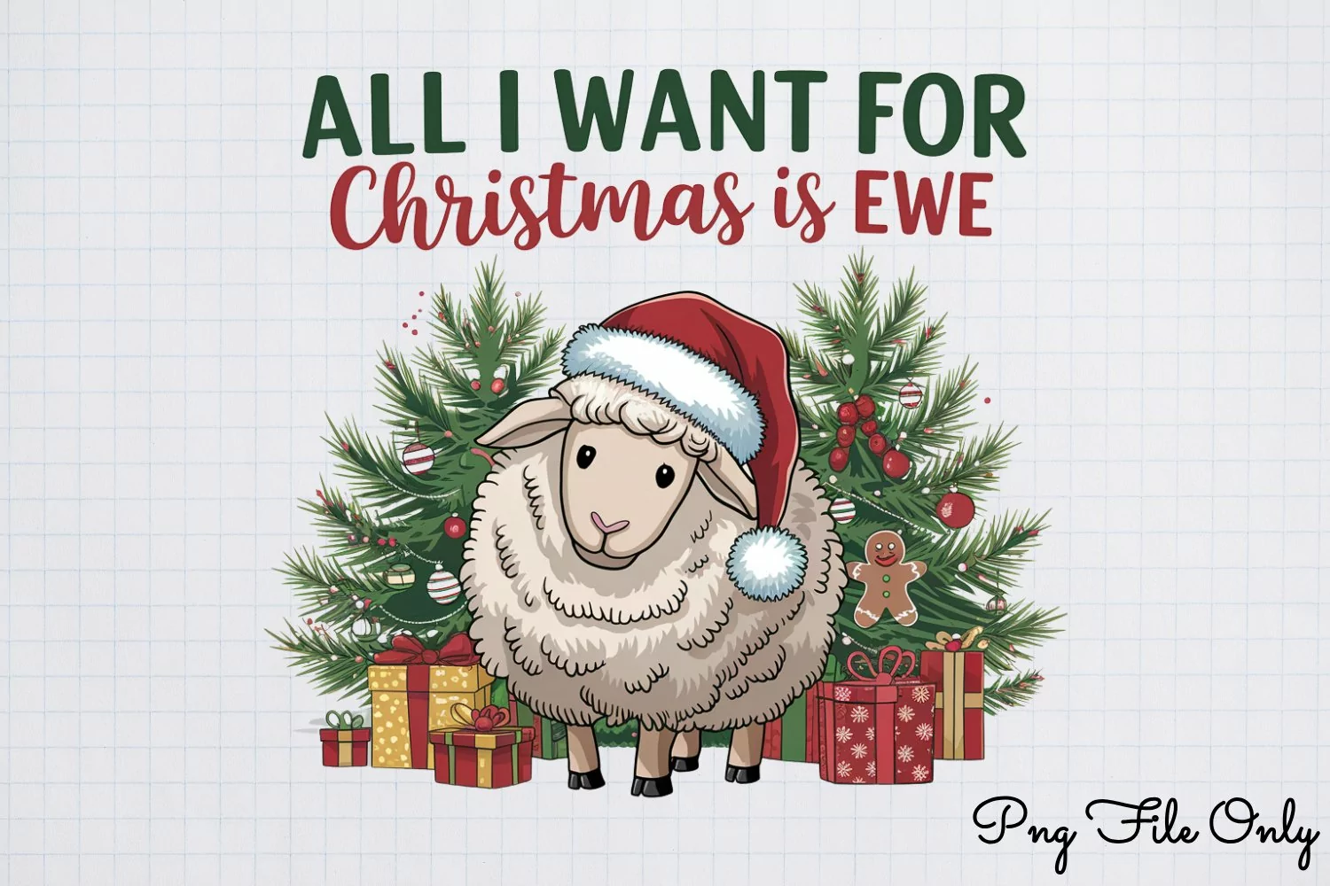 Similar Design Products to All i want christmas is ewe Retro Christmas Clipart PNG