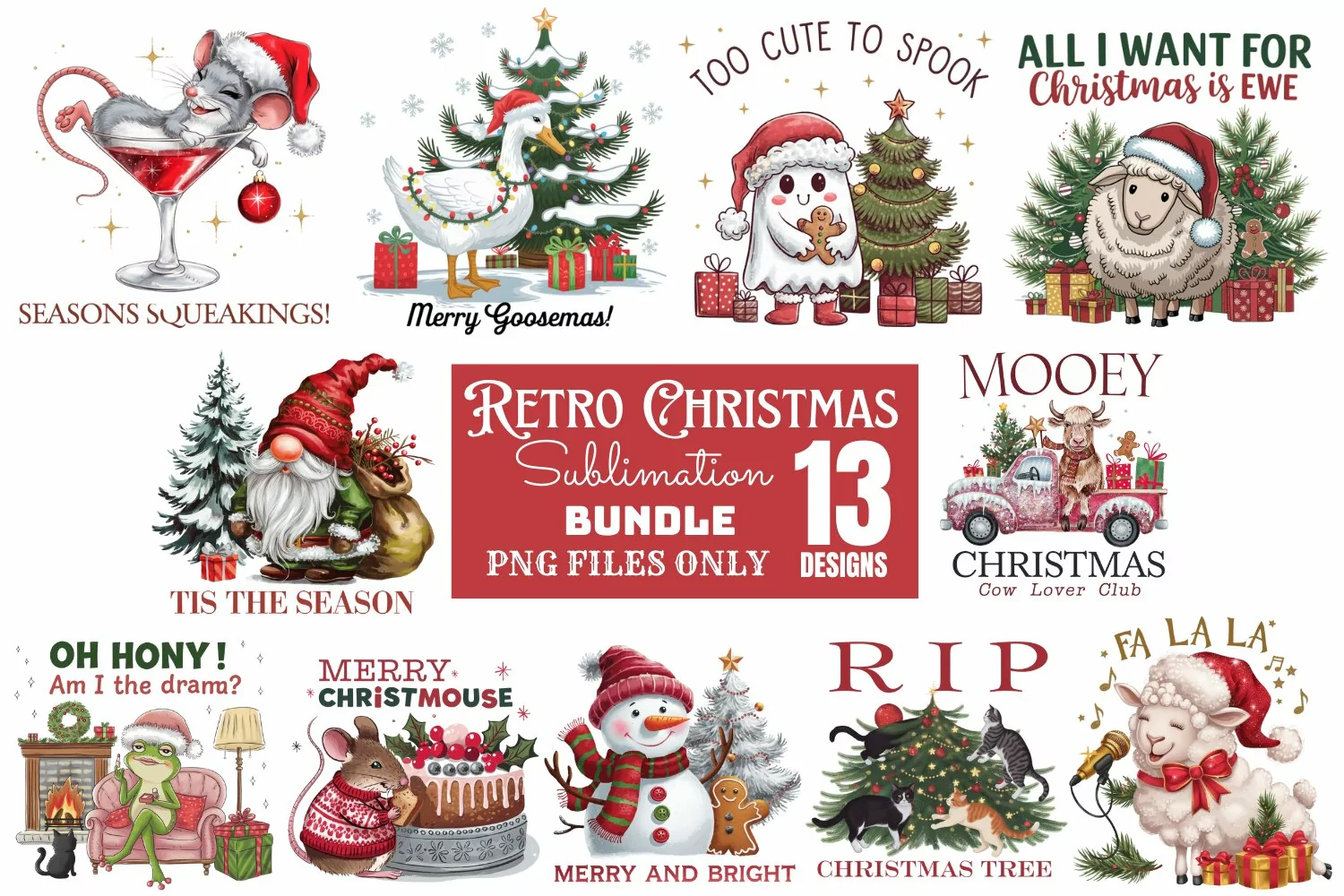 Retro Christmas Sublimation Clipart Bundle PNG example image 1