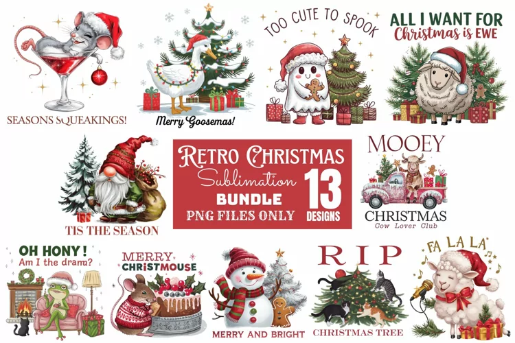 Similar Design Products to Retro Christmas Sublimation Clipart Bundle PNG
