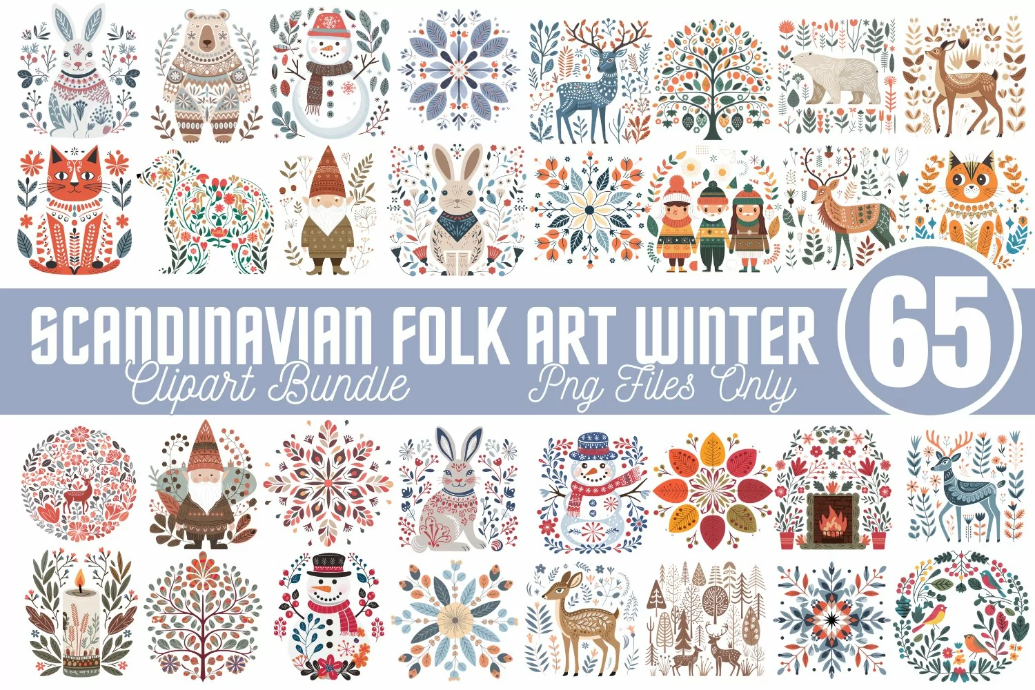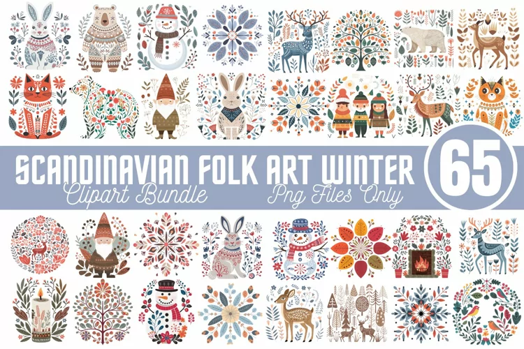 Scandinavian Folk Art Winter Clipart Bundle PNG