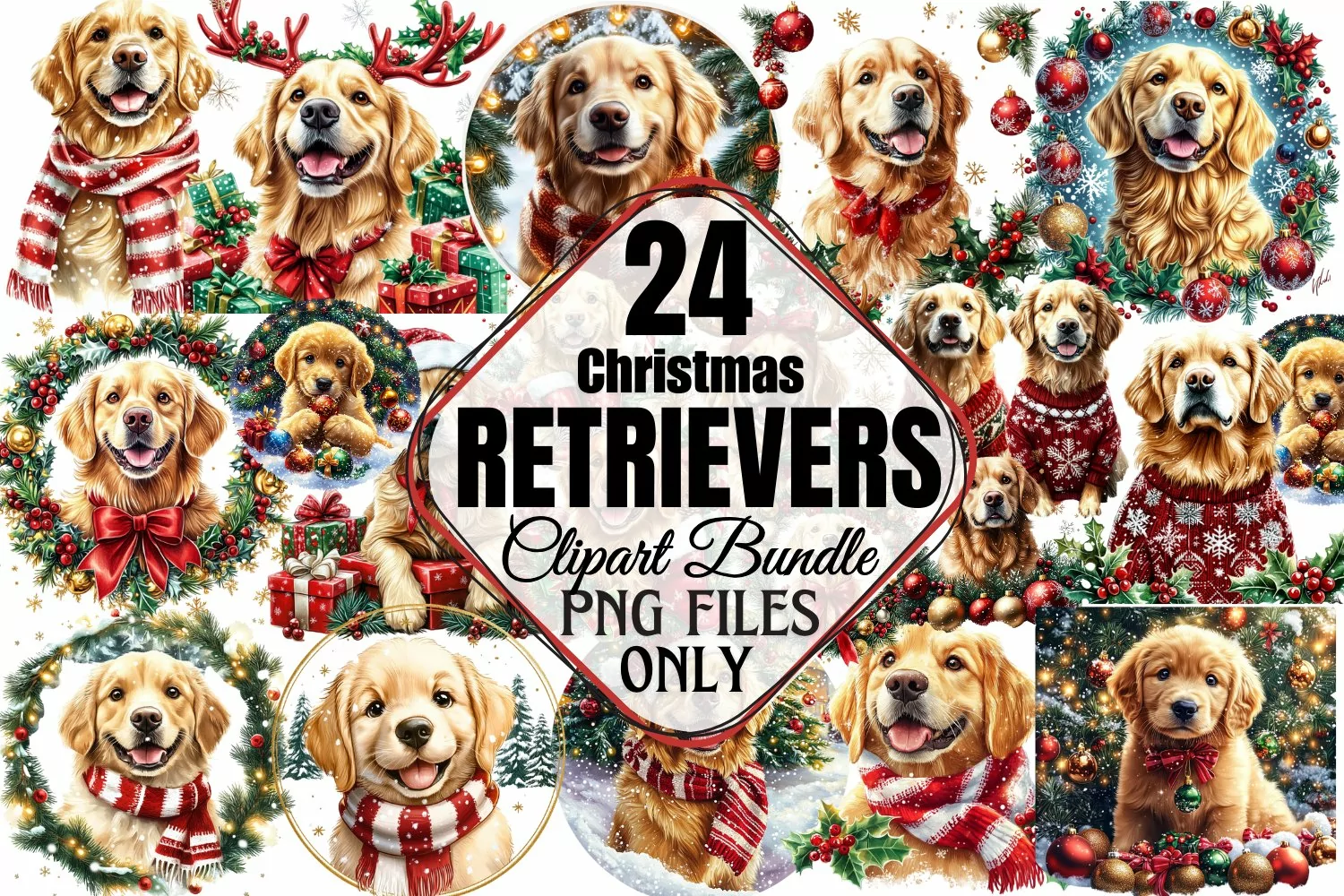 Christmas Retrievers Clipart Bundle PNG