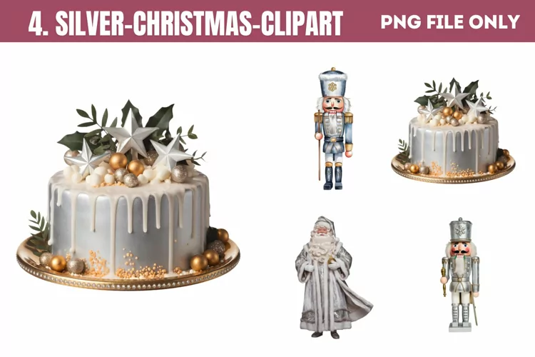 Silver Christmas Clipart Sublimation PNG example image 1