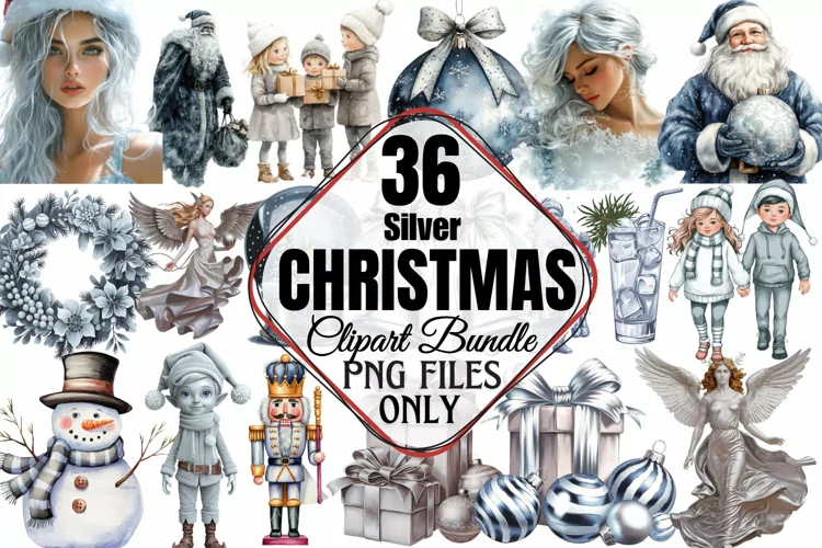 Silver Christmas Clipart Sublimation Bundle PNG example image 1