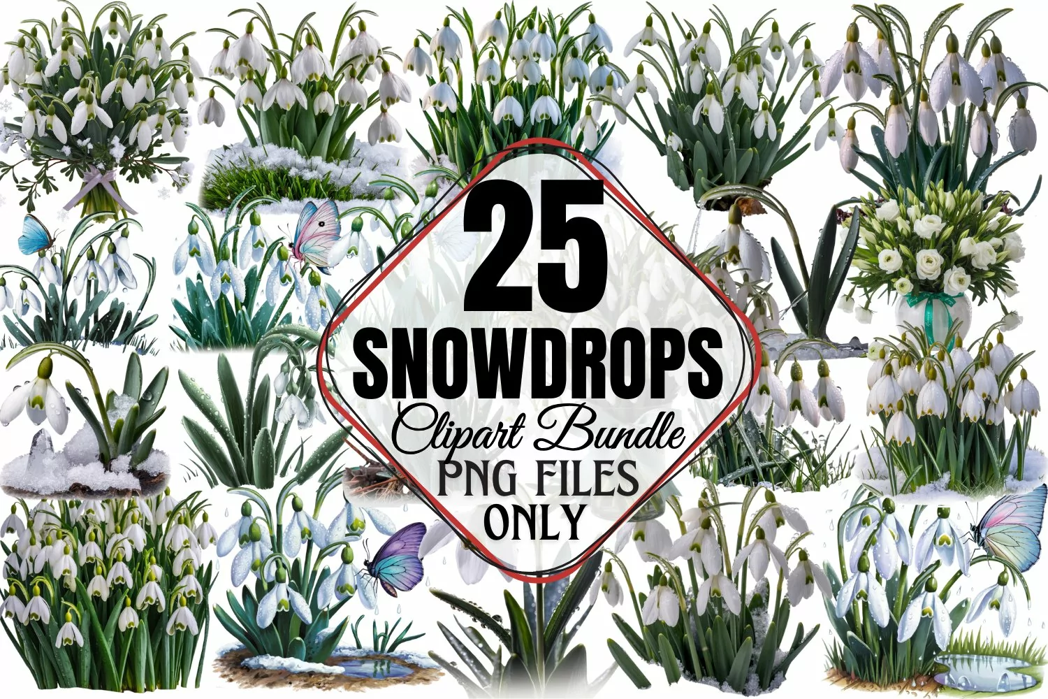 Snowdrops Clipart Bundle PNG