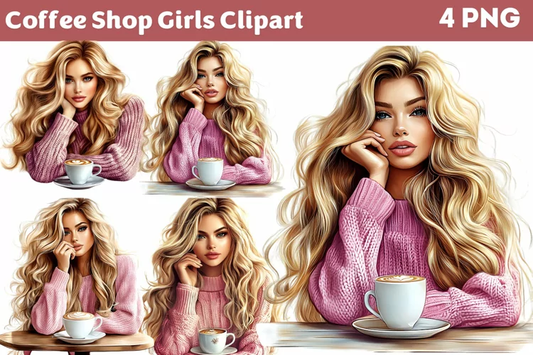Coffee Shop Girls Clipart PNG example image 1