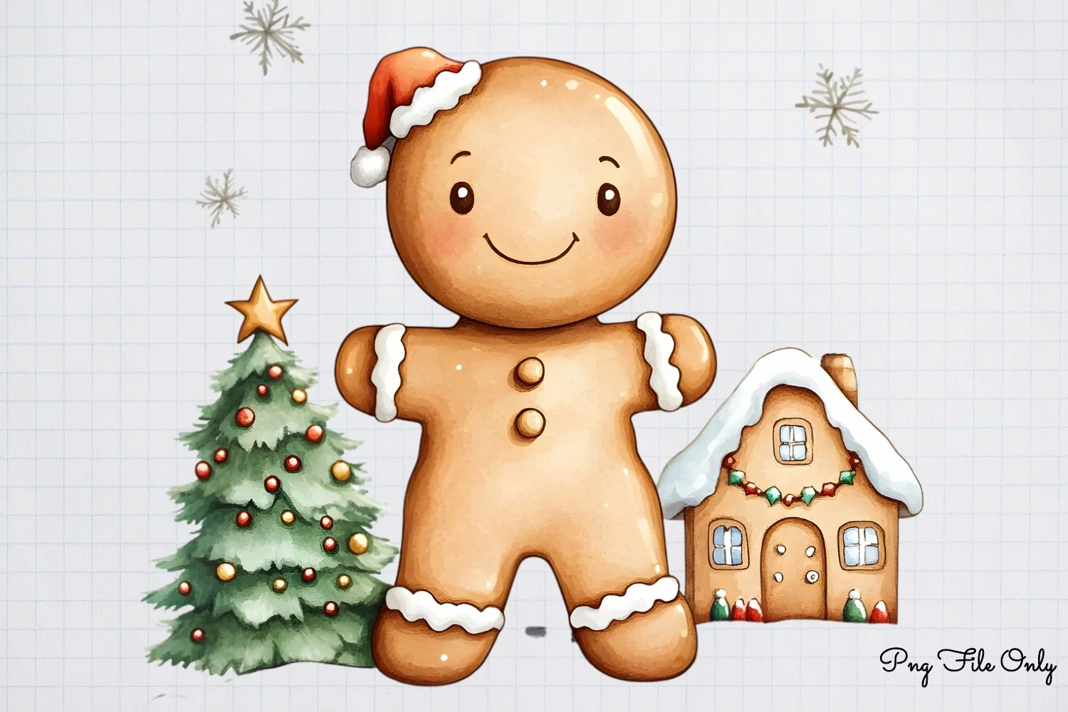 Funny Christmas Gingerbread Man Clipart PNG example image 1