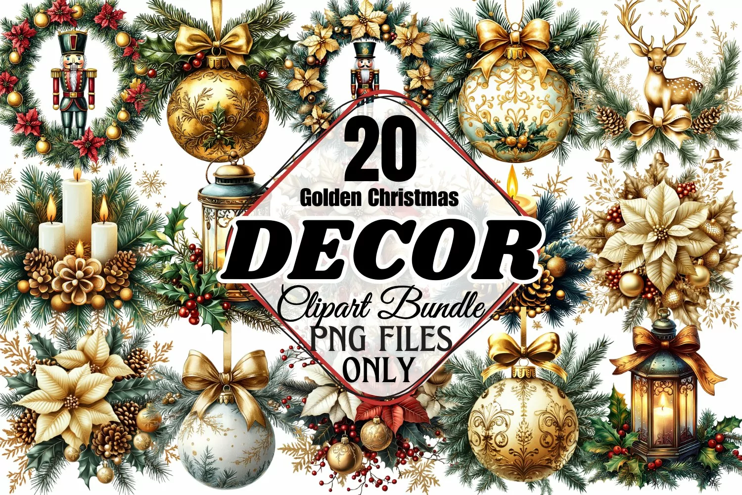 Golden Christmas Decor Clipart Bundle PNG example image 1