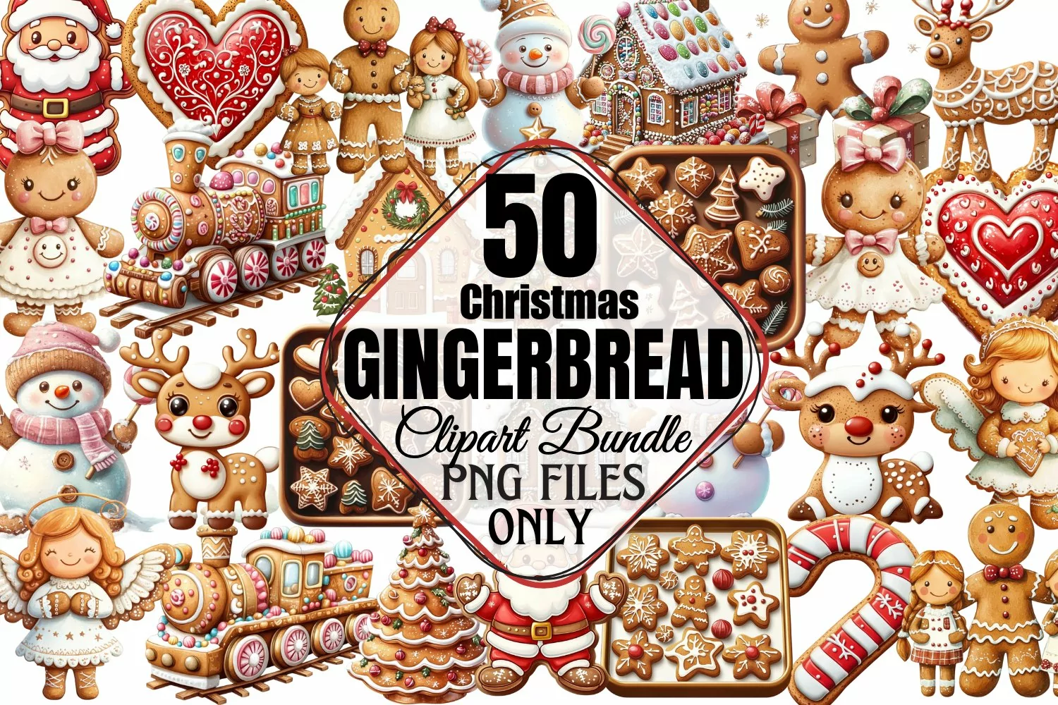 Christmas Gingerbread Clipart Bundle PNG example image 1