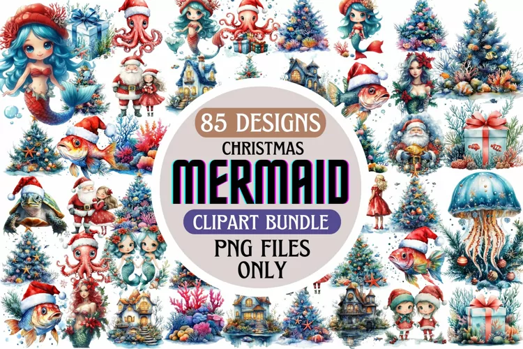 Similar Design Products to Christmas Mermaid Clipart Bundle PNG