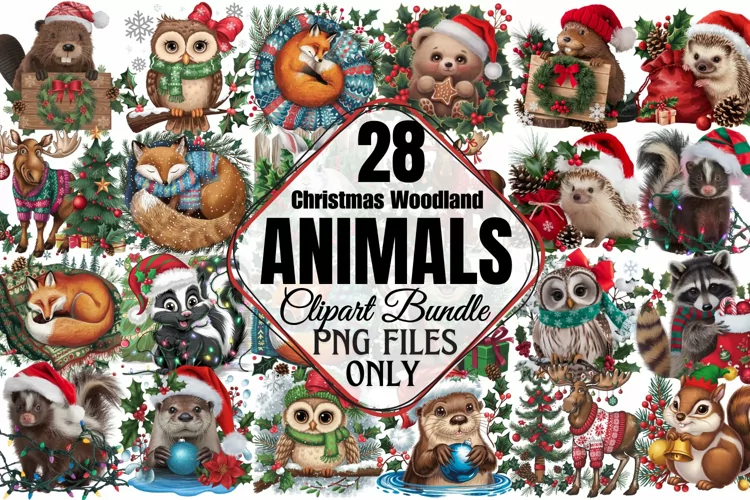 Christmas Woodland Animals Clipart Bundle PNG