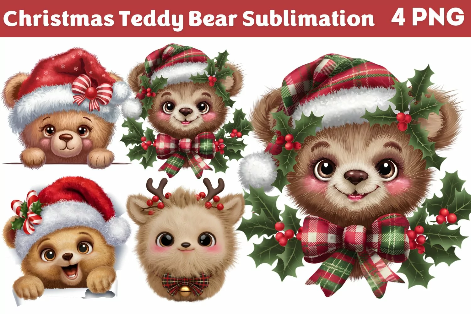 Christmas Teddy Bear Sublimation Clipart PNG example image 1