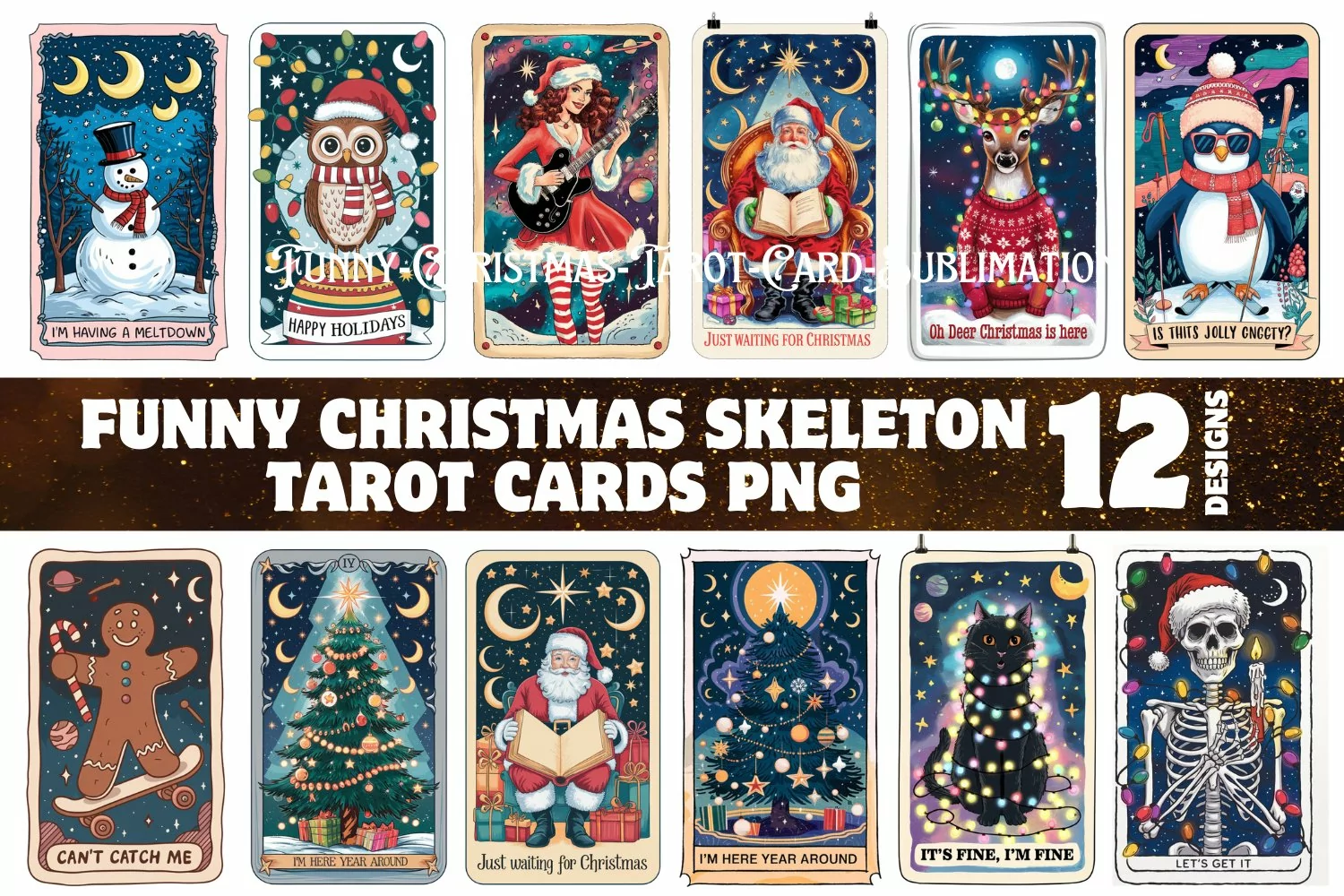 Funny Christmas Tarot Card Sublimation Clipart Bundle PNG