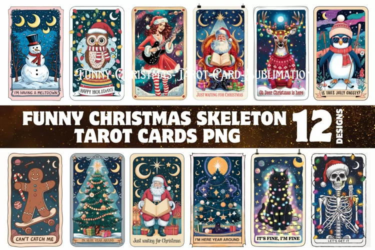 Funny Christmas Tarot Card Sublimation Clipart Bundle PNG example image 1