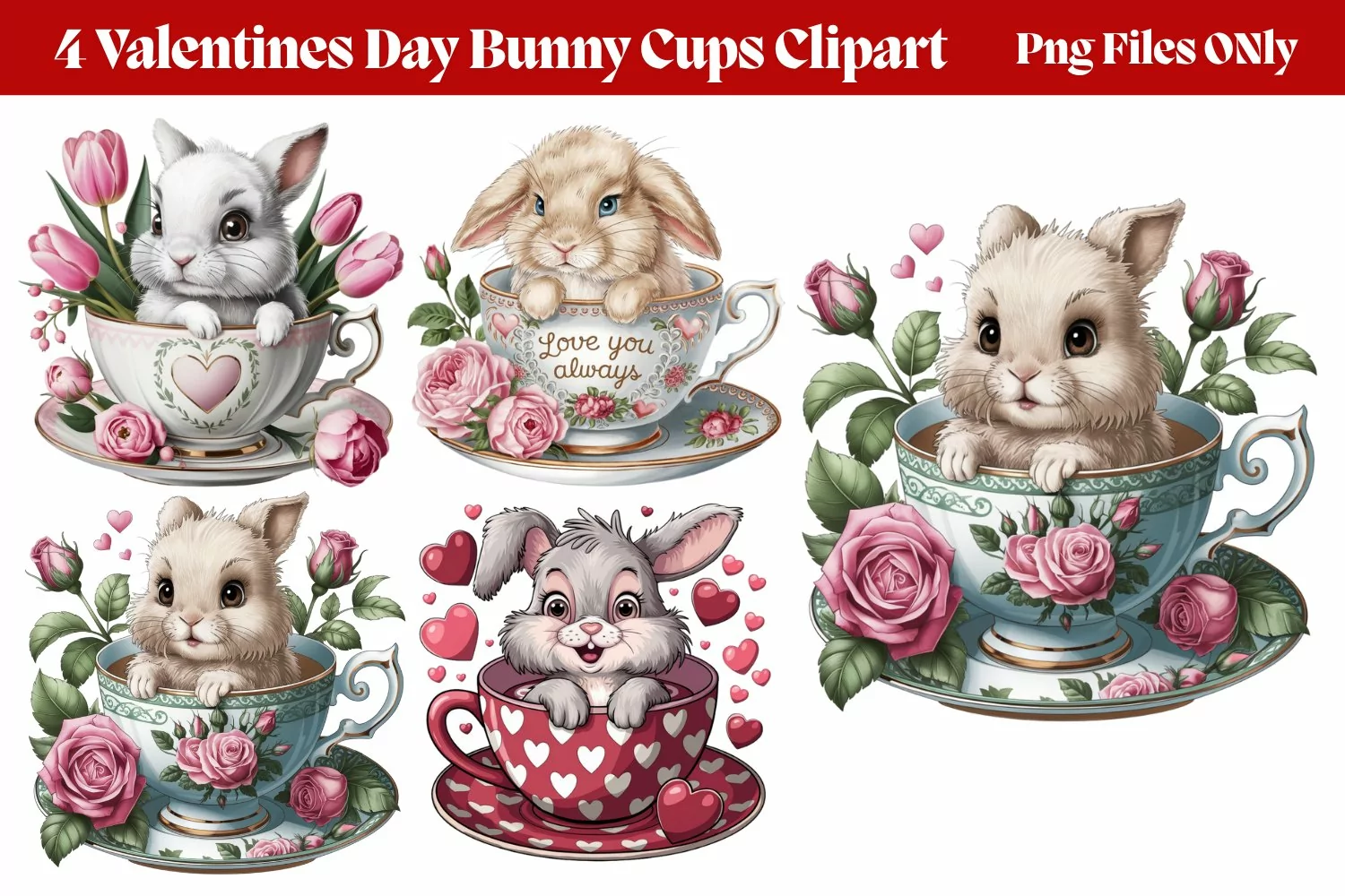 Valentines Day Bunny Cups Clipart PNG example image 1